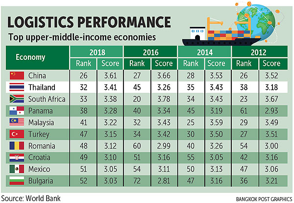 Thailand has been on a streak of performing well in many international rankings. In a recent Bloomberg Economics' study of volatility, Thailand was ranked the third least volatile emerging market based on four equally ranked criteria: the current-account balance, external debt as a share of GDP, government effectiveness, and inflation. Thailand also jumped from 45th to 32nd in the World Bank's Logistics Performance Index, and ranked as the 10th most popular country for global visitors in 2018.